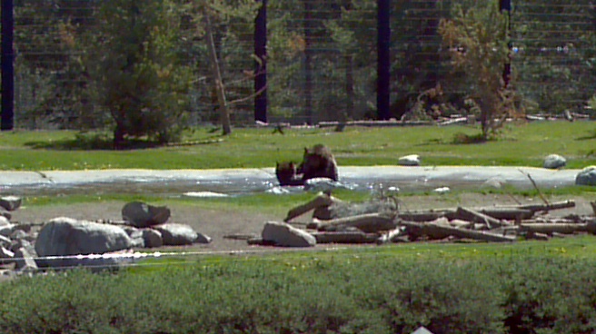 We followed our hosts from Big Sky to the West Entrance of Yellowstone on Tuesday. Before going into the park they took us through the Montana Grizzly and Wolf Reserve. This is one of the places bears, wolves and other wildlife go when they have been injured or captured for becoming a danger. It was fun to watch the Grizzly Bears wrestle with each other. I was reminded I was in Montana when I noticed a young man striding around with a gun holstered at his side like we were in the old west.