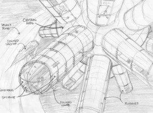 I write within a universe I am slowly building. Today I’ve added more detail about a favorite setting, Saturn Station. This is a place that exists in my stories The Leaving and Saturn Station Remote and I’m certain it will be in other future stories. I’ve added it to my Encyclopedia of the Future, which is my depository for expanded information on the places I have imagined.